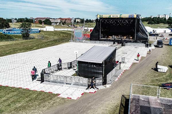 Dabei bleiben die stark profilierten HD Panels selbst auf schrägen oder sehr feuchten und schlammigen Flächen fest am Platz und bieten immer noch optimale Traktion. Auf Festivals kommen sie fern des Zuschauerbereichs, sprich: in reinen Arbeitsbereichen, zum Einsatz. Dort schaffen sie unter anderem LKW-Zufahrten, Kranstell-, Arbeits- und Logistikflächen.