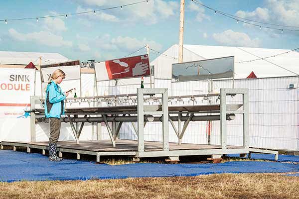 Wer hat schon Lust auf ewiges Suchen, weite Wege und lange Warteschlangen? Deshalb ist es wohl für jeden Festivalgast eine Erleichterung, stets eine Toilettenmöglichkeit und vor allem in ausreichender Menge in der Nähe zu wissen, wenn es mal schnell gehen muss. Daneben ermöglichen Duschkabinen und Waschbecken Besuchern mehrtägiger Freiluftveranstaltungen, ihr Grundbedürfnis nach Sauberkeit und Hygiene zu befriedigen.