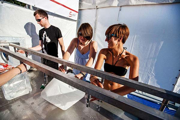 Ob auf dem Camping- und Glampingplatz oder auch im Infieldbereich: Es lohnt sich, diese Trinkwasserstationen großzügig auf dem Festivalgelände zu verteilen. So ist eine hinreichende Trinkwasserversorgung aller Veranstaltungsteilnehmer garantiert.