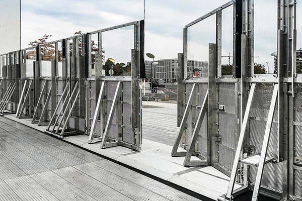 Der Aufsatz ist 1,09 Meter breit. Mit einer Höhe von 0,91 Meter – ab der oberen Kante der darunter errichteten Barrikade – erzielt er eine hohe, sichere und zugleich transparente Absperrung. Die Gesamthöhe einer Barrikade wird damit ab der Fußplatte auf rund 2 Meter erhöht.