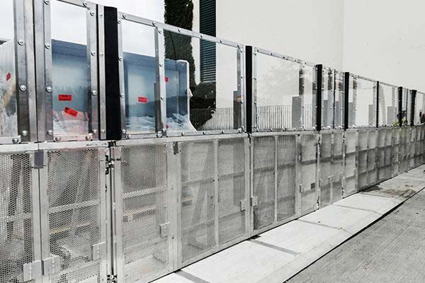 Unser GIGS High Fence Element, entwickelt und hergestellt in unserer italienischen Niederlassung, trägt die CE-Kennzeichnung. Es ist in Silber und in Schwarz erhältlich und besteht aus einem stabilen Aluminium-Rahmen mit innen liegender Kunststoff-Platte. Diese ist aus durchsichtigem und schlagfestem Polycarbonat gefertigt.