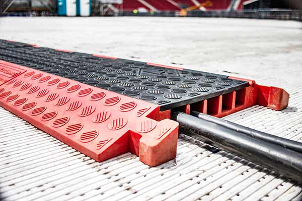 Wir führen verschiedene modulare Kabelschutzlösungen wie Black Line, Red Line oder Defender Mini und Midi, die outdoor wie indoor zum Einsatz kommen. Sie prägen die Böden von Baustellen, Drehorten und Eventlocations aller Art.