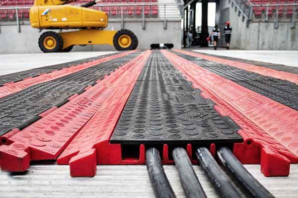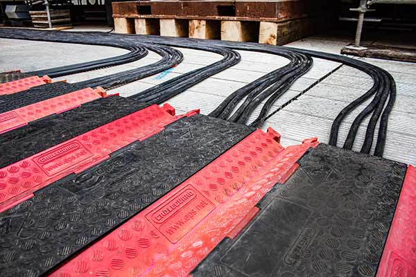 Die einzelnen Elemente, die jeweils mit fünf Kabelkanälen ausgestattet sind, lassen sich einfach zusammenstecken. Außerdem erfordert die Verlegung der im Vergleich zu ähnlichen Modellen eher leichten Kabelschutzbrücke weniger Kraftaufwand. Überdies lässt sich durch das geringe Gewicht eine höhere Ladekapazität und Transporteffizienz erzielen.