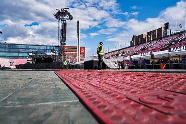 In addition, we recommend our GIGS Multicore Barricade Modules or our GIGS Flex Element. They allow cable ramps to pass easily under the stage barricades. Cable covers belong at every concert. Safety markings like these protect both cable connections and concert attendees.