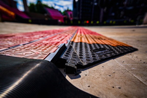 In general, the various cable protection elements have three or five cable ducts. These also vary in size. Profiled, non-slip surfaces ensure a secure grip. And with their signal colors such as yellow or red, they can be easily recognized from a distance by concert visitors, artists, and staff.