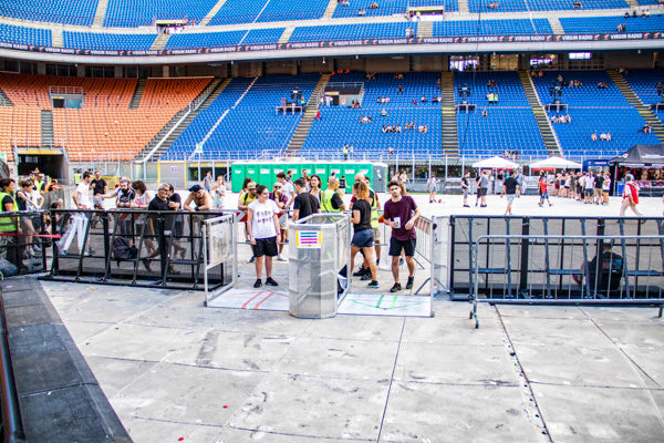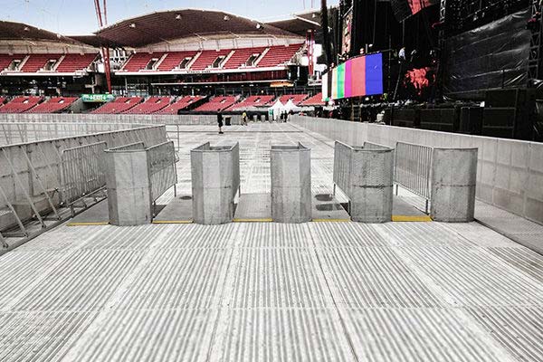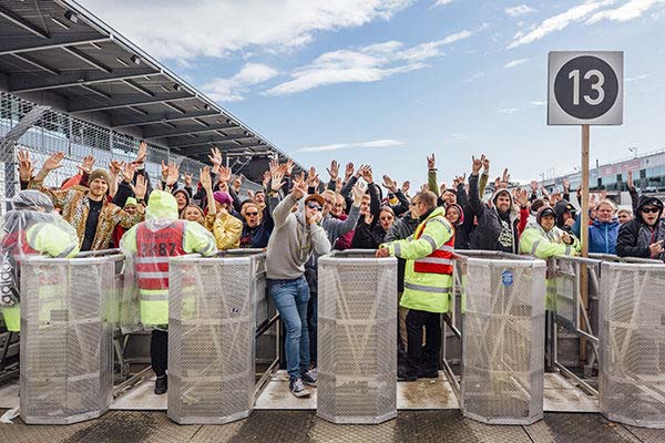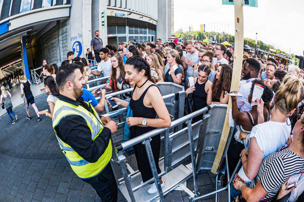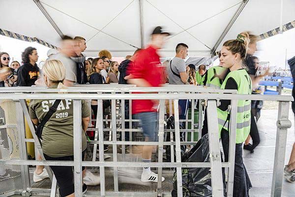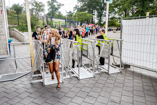 Security gates immediately catch the eye of arriving concert visitors and show them a reliable way to the venue. Such access systems are usually used at the main entrances. They are also occasionally installed in line-up gates at open-air events to make demarcated spectator areas accessible to a selected number of people.