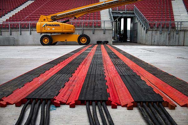 In addition to separating traffic and walkways, there are many other safety aspects to consider on a construction site. These include cable protection bridges. Therefore, we offer cable protection solutions of various sizes, designs, and load-bearing capacities. Moreover, these come with easy-to-fold covers.