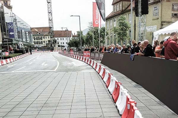 We are also the right partner for those who want to rent traffic engineering solutions. These include water-filled traffic barriers. Moreover, the red and white lines created by the individual elements have a signaling effect.