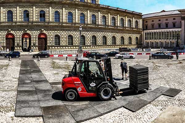 Cars or other vehicles may be parked on any open-air site. Let’s put it this way: we have solutions that make a lot of things possible. For example, they give very yielding floors the stability they need. Floor protection ensures the best load-bearing capacity and slip-resistance, optimum load distribution, and traction in a wide variety of locations. At the same time, it provides the best possible protection for the covered substrates. It counteracts land damage and soil compaction or protects sensitive surfaces from other damage.