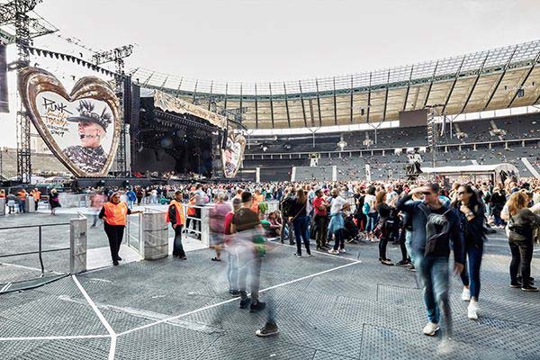 Specific pass-through elements provide supply and maintenance access to the stage area, the FOH, and the delay towers. Other GIGS elements create elevated walk-through areas for the security team. And other special elements create different angles to make a space-saving separation possible. Finally, our solid entry gates allow controlled and safe public entry. Therefore, these make our wide range of barrier solutions complete.