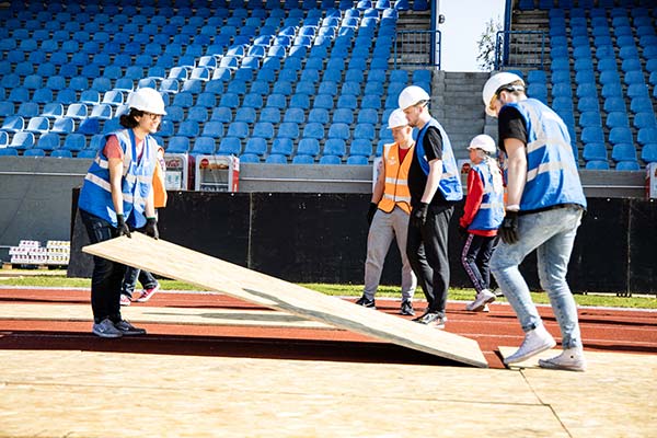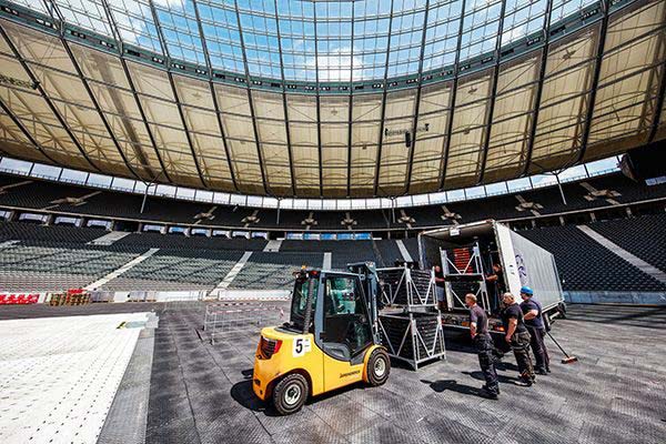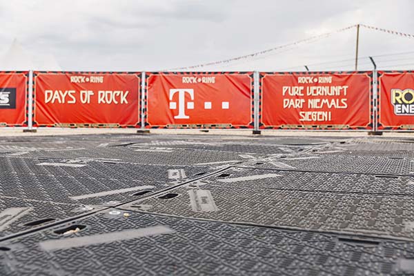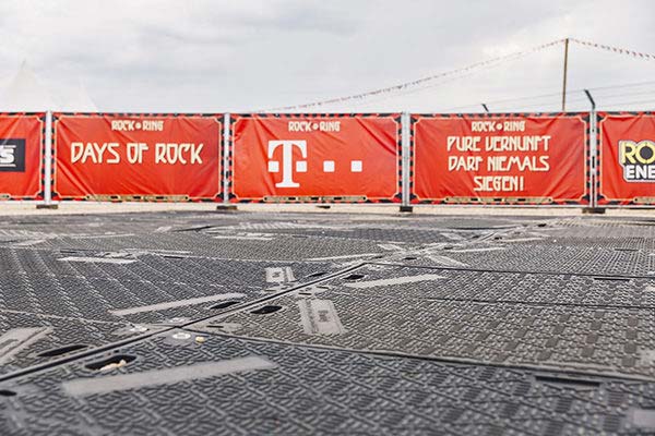 We offer pedestrian event flooring solutions that are easy to install by hand and form smooth, stable, pedestrian-friendly panels. Thanks to non-slip surface structures, they ensure secure flooring. Anyone planning a multi-day event on stadium turf should also pay attention to the light- and air-permeable texture and the recommended laying time. They can use ground protection products such as Matrax, Terratrak, or Pedestrian Event Flooring. Additional note: All heavy-duty flooring solutions can combine with almost any pedestrian event flooring protection system.
