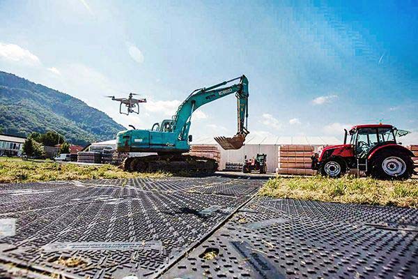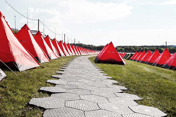 Drivable Event Flooring PistEco is flexible and suitable for heavy loads. Therefore, it can bend in all directions to construct roads on uneven terrain and small corners. Highly flexible Easymats are ideal for almost any terrain. The plastic mats can cover gravel bottom run-off zones at racetracks. Moreover, Hexagon also easily withstands unevenness. Similarly, due to their honeycomb design, even asymmetrical surfaces can be implemented with the hexagonal ground protection panels.