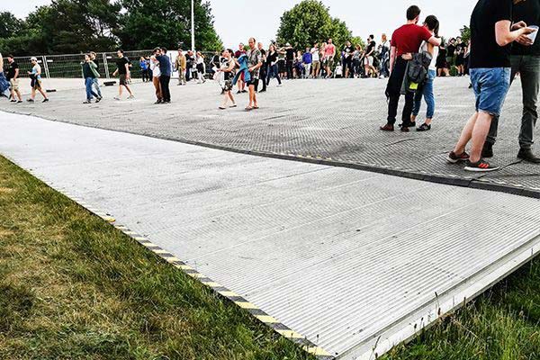 The steel ramps are used in the driveway area of heavy-duty vehicles. You can combine the drivable event flooring with various turf protection systems or other ground protection systems, such as Plywood. You can use Remopla at various venues to create highly resistant floors that can also be color-matched, if desired, in just a few simple steps.