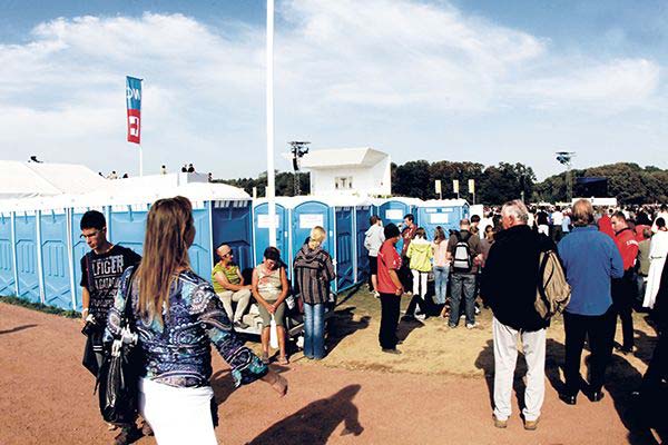 We also carry flags printed with appropriate information. These highly visible orientation aids make it easier for visitors to find their way around. Therefore, all guests can quickly and safely reach the sanitary facilities on an extensive event site.