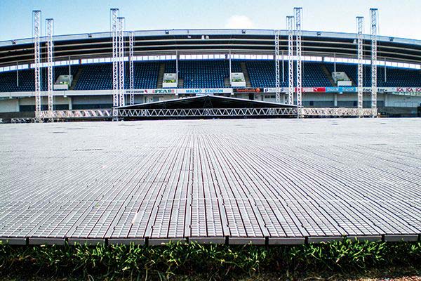 Portafloor is quick and simple to install, and the thin, lightweight panels can be transported in large quantities, making it a highly transport-efficient turf protection system. The grass is appropriately covered and can breathe beneath Portafloor’s specifically designed ribbed underside.