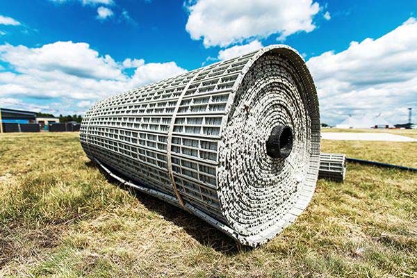 The flat, rollable, and 9-meter-long (29.53 feet-long) tracks allow for easy and fast covering of large grass areas, even on grounds with slight slopes. The light- and water-permeable turf protection flooring weighs approximately 4 kilograms per square meter (0.82 pounds per square foot), and each roll can cover an area of 11.07 square meters (119.16 square feet).