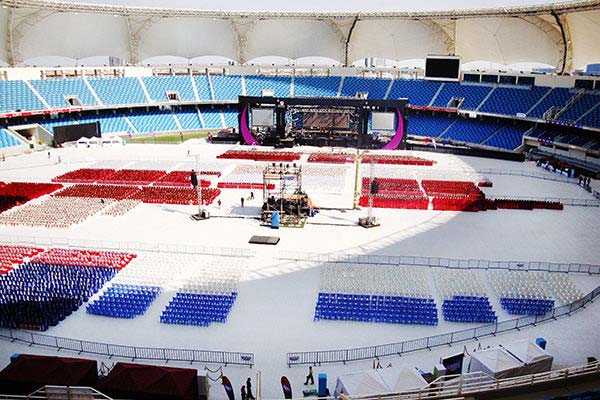 Terraflor boasts an integral non-slip surface with anti-spill properties, effectively preventing fluids and dirt from reaching the field. Raised air holes further safeguard against spillages, while allowing much-needed air permeation to the grass below. The multi-directional locking mechanisms ensure a stable, gap-free event surface, while effectively distributing loads for optimal performance.