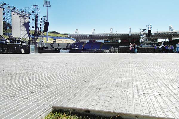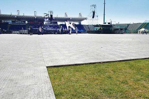 Designed with a non-slip surface structure, our turf protection system offers visitors a secure hold. Special openings in the panels protect against dirt and liquids, including precipitation and spilled drinks. Upon request, we can also provide transport, construction, breakdown, and final cleaning services. Panels can be custom-cut to the exact size for an additional charge.