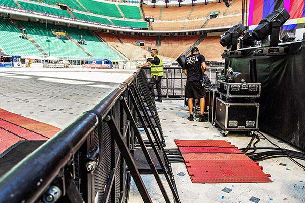 Cable protection solutions, called Yellow Jackets, provide maximum safety when routing cables across driveways or through audience areas, typically in a multicore running from the stage to the FOH. These solutions can be used both indoors and outdoors.