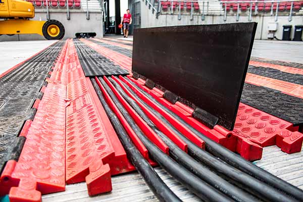 We offer a range of modular cable protection solutions, including Black Line, Red Line, or Defender Mini and Midi, which are ideal for indoor and outdoor events, construction sites, filming locations, and event venues.