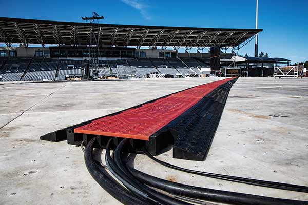 At our company, safety is a top priority. We take every precaution to protect our staff and guests at all times. Whether it’s a special event, filming, or construction project, careful and safe installation of cables is essential. Our cable protection systems help keep fire hoses, lighting, sound, video equipment, and other power cables safe from damage, preventing the danger that can be caused by driving over them or exposure to weather or vandalism.
