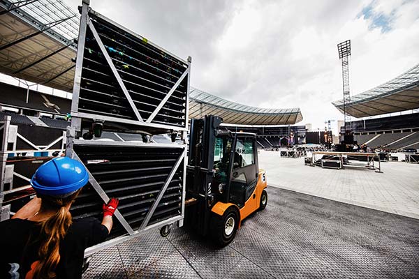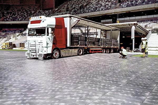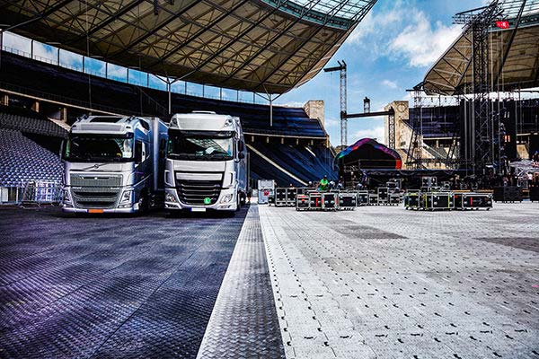 Look no further for all your touring logistics needs. Our extensive portfolio of pedestrian event flooring is designed to meet the diverse requirements of local venues, including turf protection properties and heavy-duty capability. Our equipment is compliant with official requirements such as fire protection and skid resistance and can be adapted to the unique needs of tour productions.