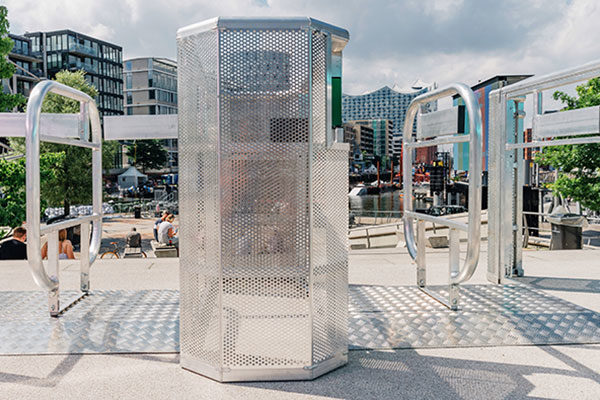 Progettato come un Double Line-up Gate, il sistema dell’ingresso ha una porta con due elementi apribili larghi 57 centimetri. Nella sua funzione di uscita d’emergenza, il gate si apre ad una larghezza di 1,20 metri, in linea con le vigenti norme di sicurezza. La trasformazione in un’uscita di emergenza è semplice: basta premere un bottone.