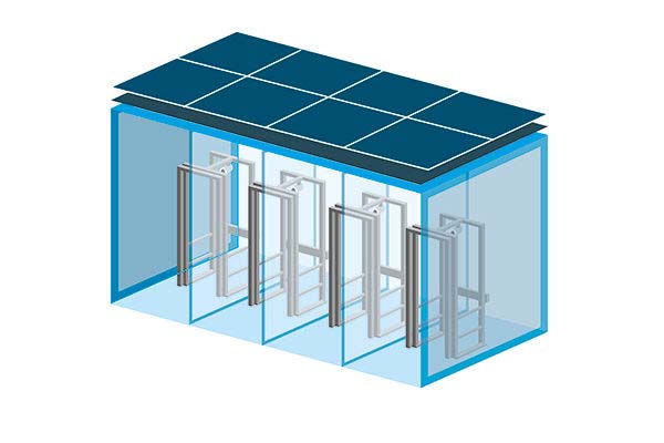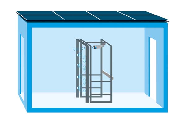Gli Intelligent Access Gate offrono diverse possibilità e, grazie al sistema modulare, si possono ampliare molto rapidamente. Sono disponibili sistemi per la disinfezione mobile e body scanner sia per i modelli per gli eventi al chiuso che per quelli per le manifestazioni all’aperto. I modelli per i container hanno anche uno schermo per la privacy, un tetto e un pannello solare integrato per la produzione dell’energia elettrica in autonomia.
